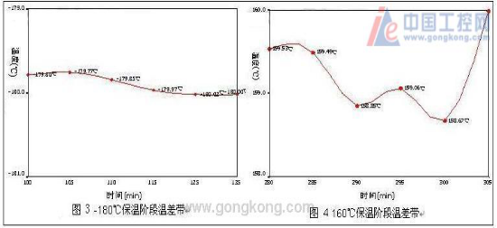 5、控溫結(jié)果與分析:深冷箱在-180℃**大溫差為0.97℃,**小溫差為0.21℃;在160℃時**大溫差為1.35℃,**小溫差為0.88℃;具體溫差帶如下圖3、4。