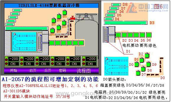 在人機(jī)界面實(shí)時監(jiān)控多臺SZDJLSLX-4186型超低溫深冷箱,在觸摸屏流程圖上實(shí)時監(jiān)控運(yùn)行狀態(tài),群控低溫深冷箱,用開關(guān)量輸入模塊AI-3011D5M模塊來實(shí)現(xiàn)低溫深冷箱運(yùn)行狀態(tài)的反應(yīng)。
