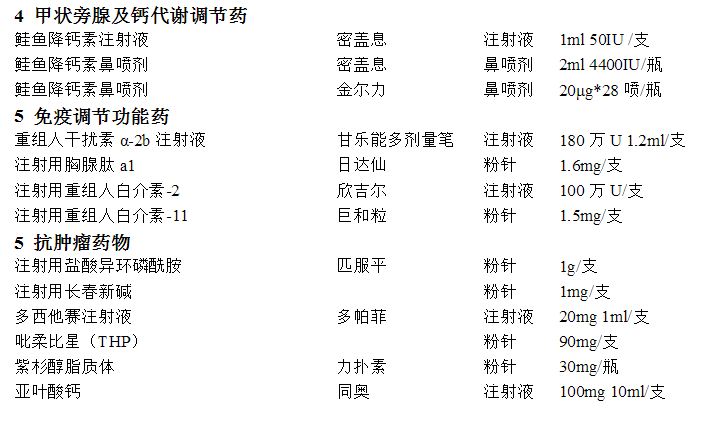 馬來酸麥角新堿注射液(H) 注射用順苯磺酸阿曲庫銨(H) 注射用細(xì)辛腦(H) 塞替派注射液(H)